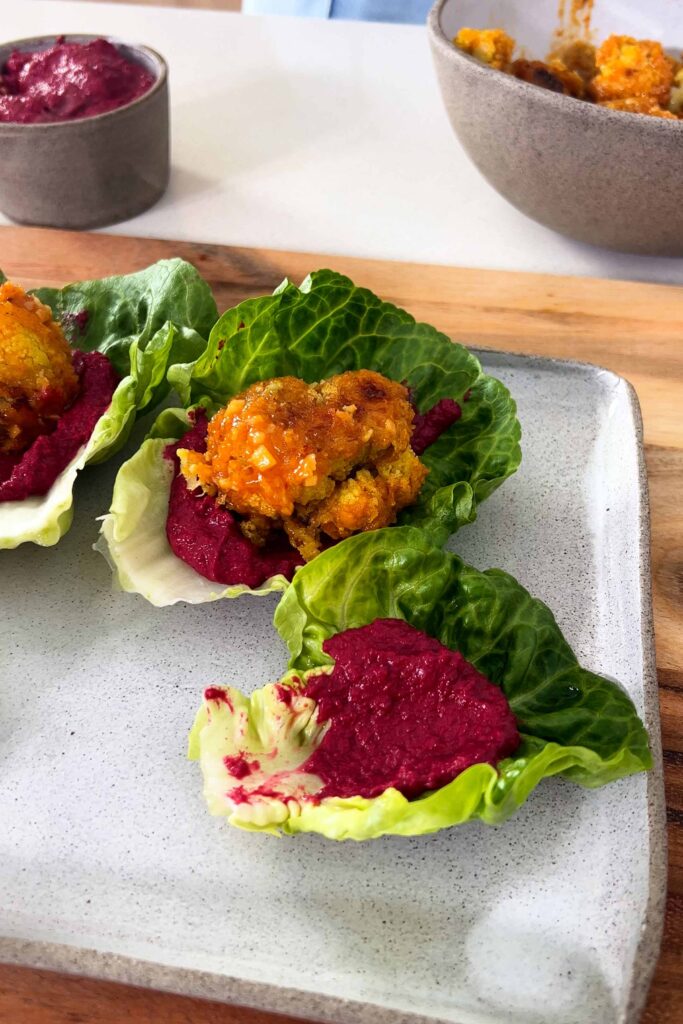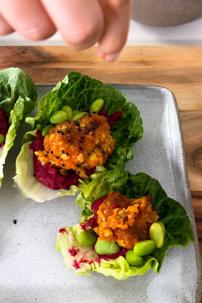 Perfect for a fun plant-based snack that packs a punch or as a delicious appetizer with friends. I could eat the whole bowl of them on my own. For a complete and balanced meal, we combined them with lettuce, beetroot hummus, edamame, and sesame seeds. They were so delicious; I can’t wait to make them again!