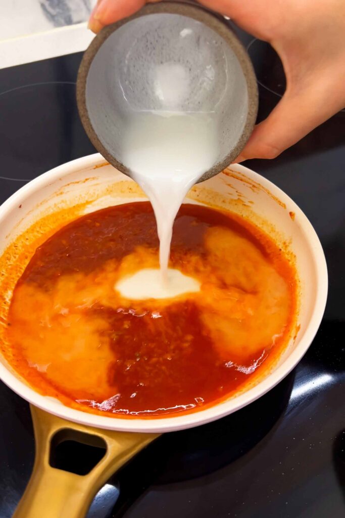 - In a separate bowl, mix the tapioca starch with 1/3 cup of water. Add this mixture to the pan and stir until the sauce thickens.
