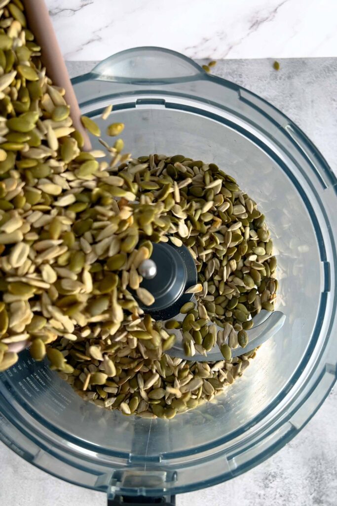- Add the roasted seeds to a blender or food processor. Process until smooth, scraping the sides as needed. Patience is key; it might take around 15 minutes to achieve the desired consistency.