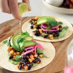 Keyword 20 mins or less, avocado, Avocado Cream, black beans, cilantro (coriander), Healthy Dinner, jalapeño, lime, onions, plant-based, Quick Meal, Tacos